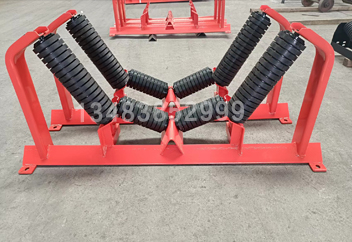 帶式輸送機(jī)緩沖托輥組安裝在輸送機(jī)受料段的下方,減小落料時(shí)物料對(duì)輸送帶的沖擊,以延長(zhǎng)輸送帶的使用壽命。